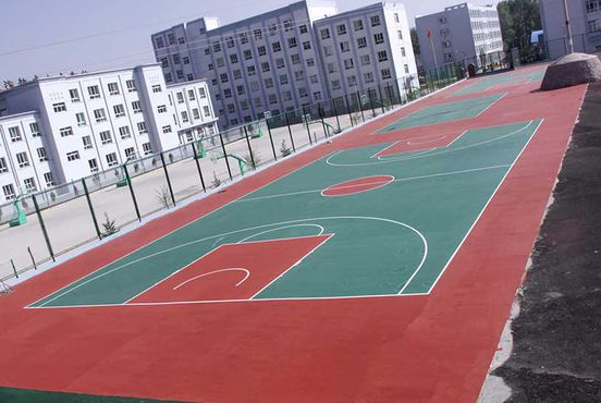 篮球场所面做法---篮球场根底做完后开端网球场面层施工,篮球场所面资料有丙烯酸篮球场、硅pu篮球场、塑胶篮球场。